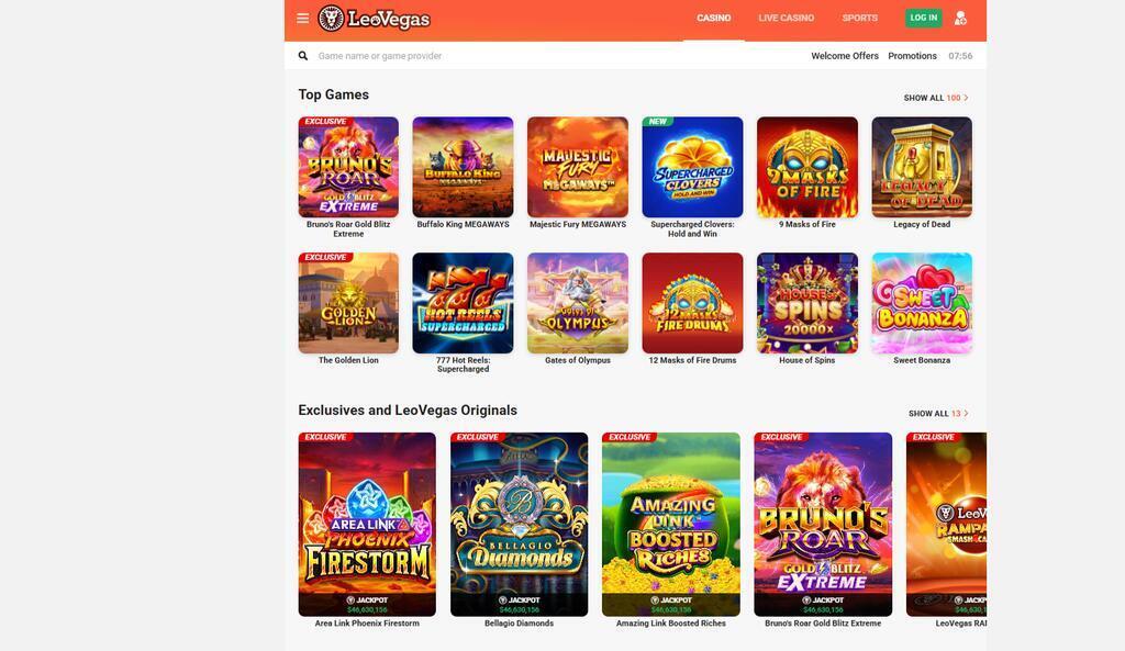 LeoVegas - casino bonus page